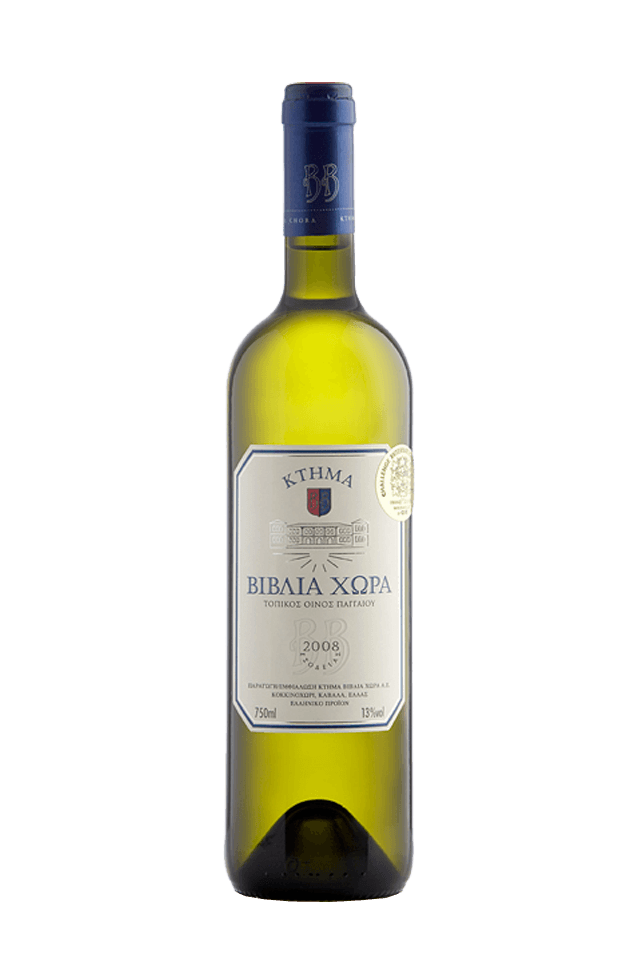Biblia Chora Estate Blend Blanco PGI Pangeon: un vino de carácter único, ideal para maridar con carnes, quesos y pastas.